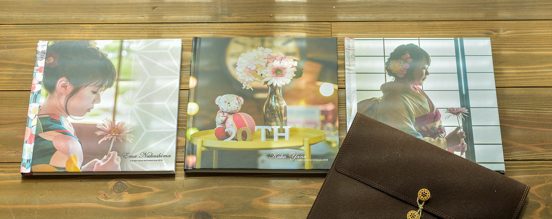 成人式のお写真は1ポーズ ¥15,000よりお好きなアルバムやデータでお撮りいたします。ポーズ数が多くなれば成る程、1ポーズがお得になります。